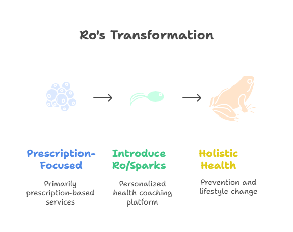 The introduction of Ro/Sparks—a platform for personalized health coaching and wellness—marked a turning point. Suddenly, Ro wasn’t just about prescriptions; it was about holistic health, prevention, and lifestyle change.